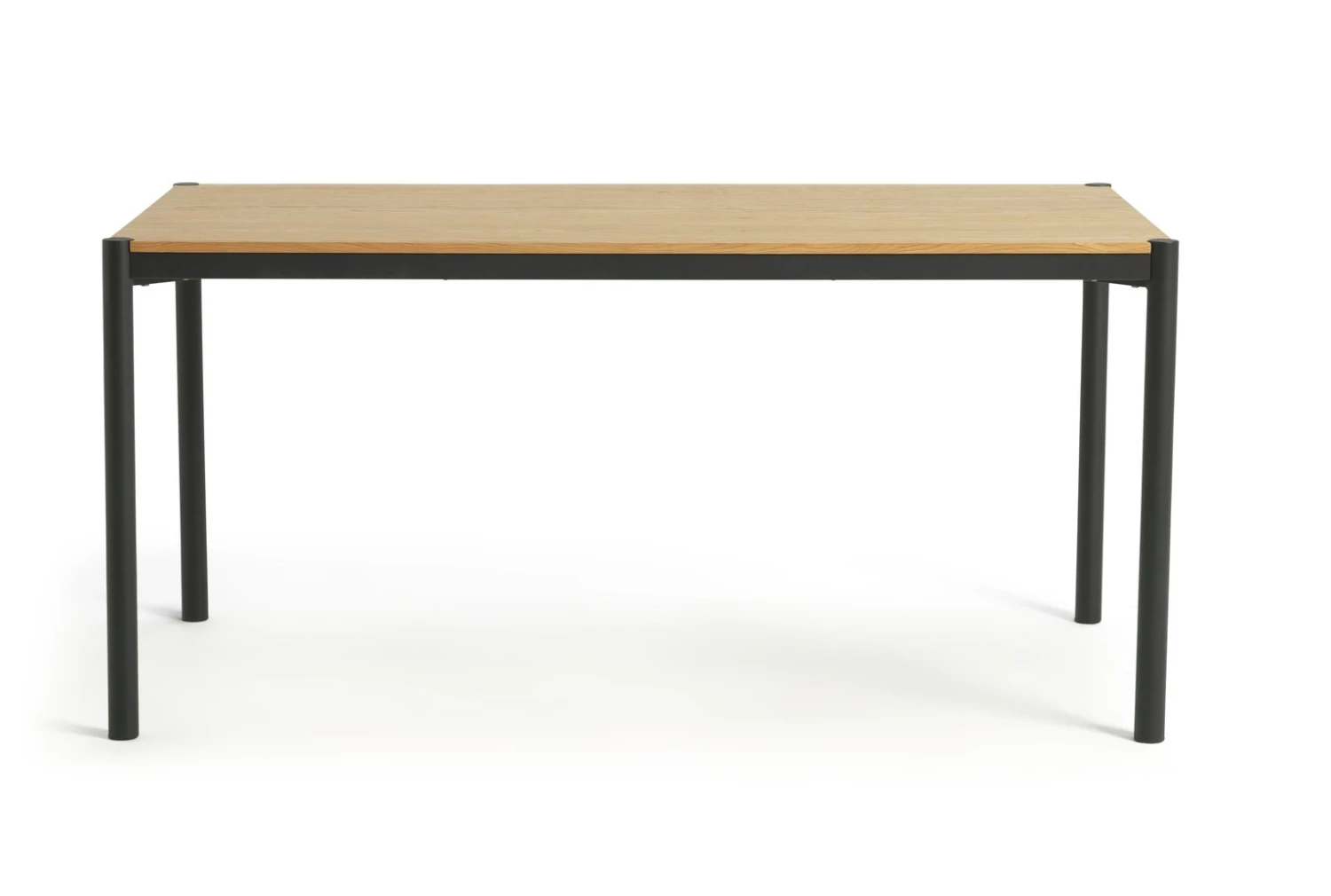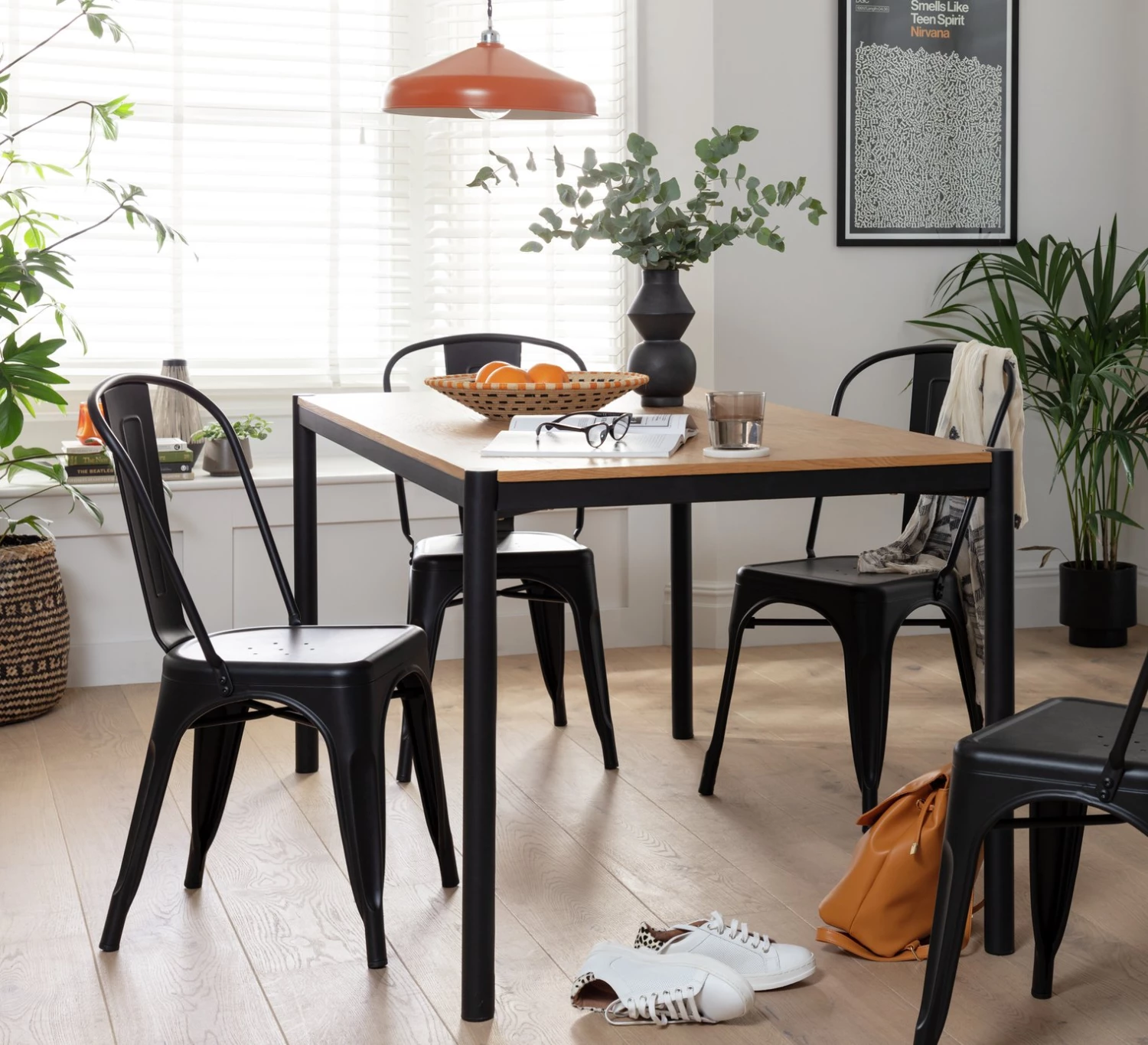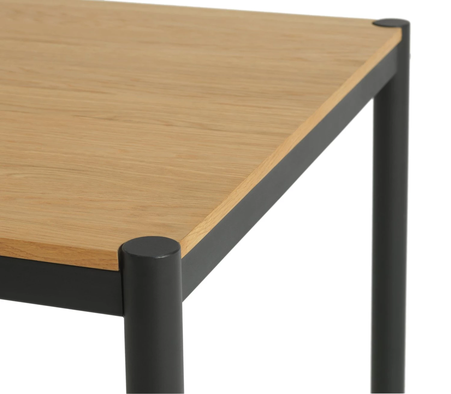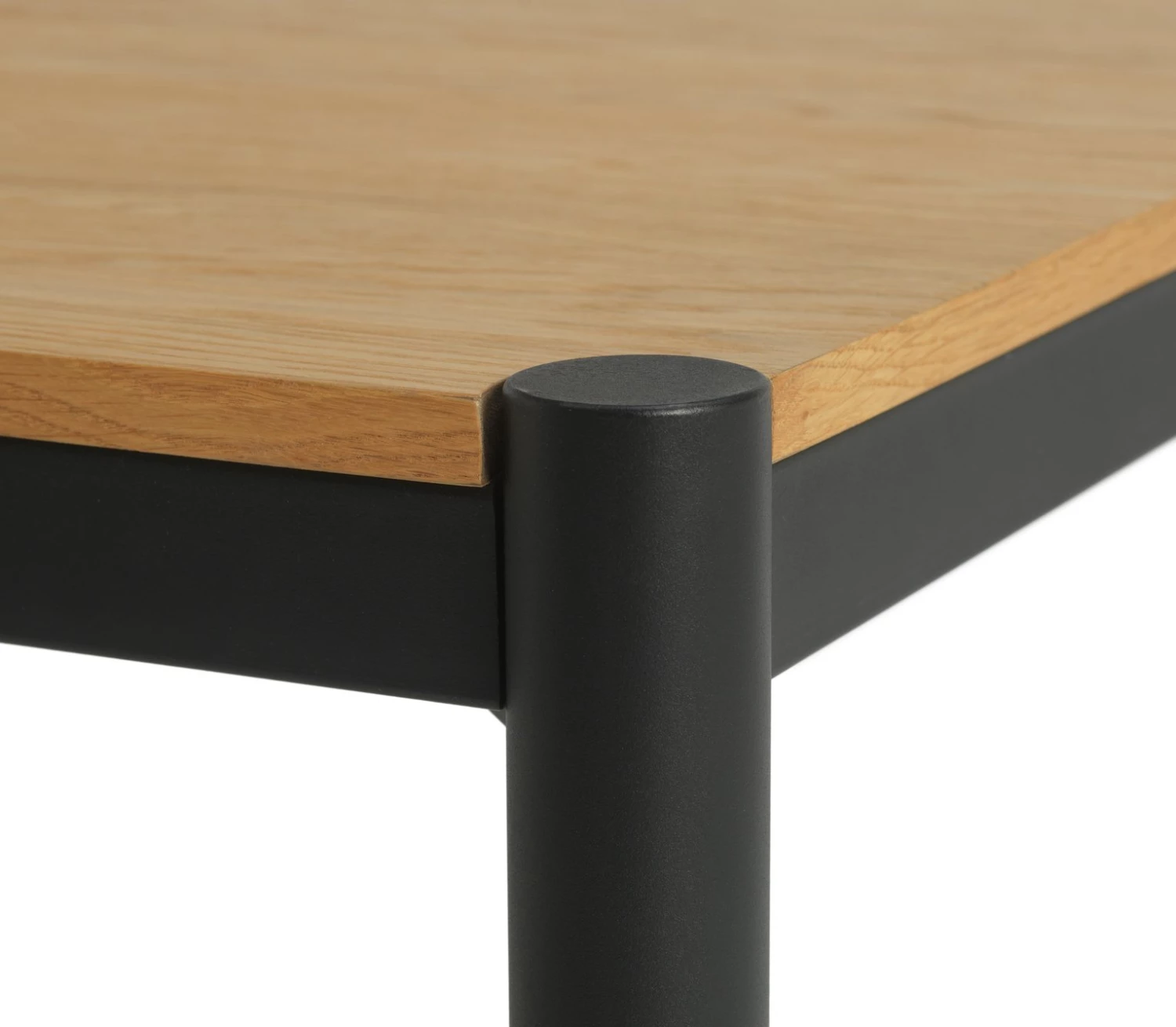 For clean, contemporary dining, look no further than Caleb. Set the scene for modern mealtimes with this metal and oak veneer table. The simply styled black metal legs contrast beautifully with the natural wooden table top. Very industrial, very on trend. For everyday dinners or entertaining guests, this unfussy dining table seats 4 comfortably. Serve up a big slice of style.