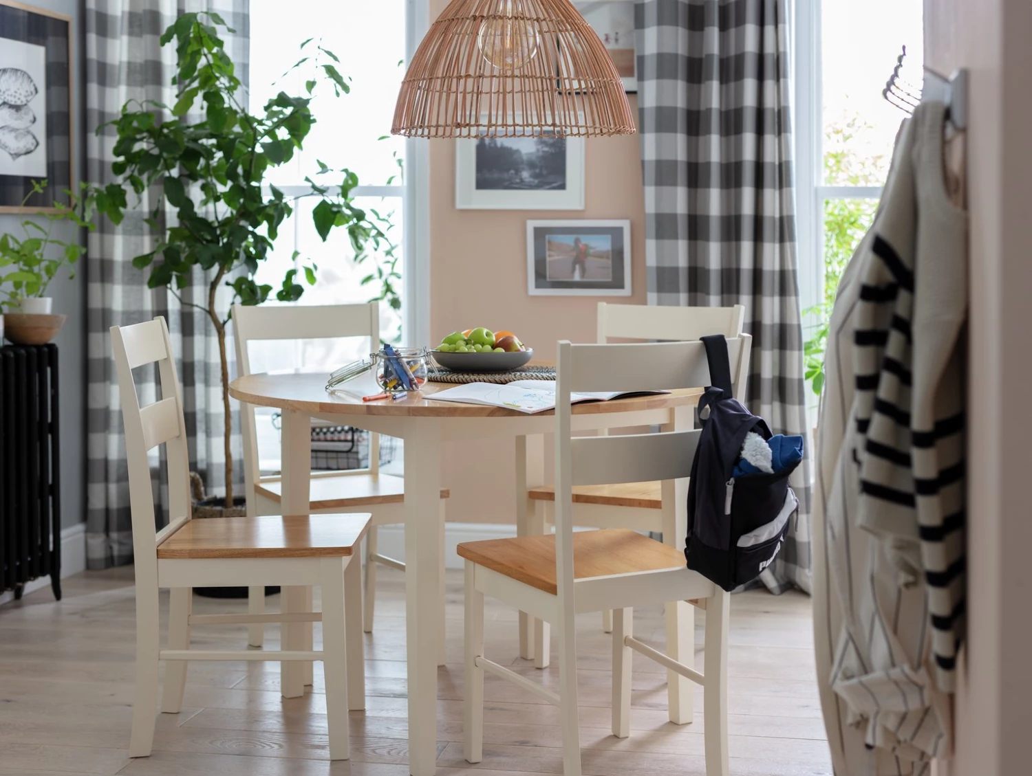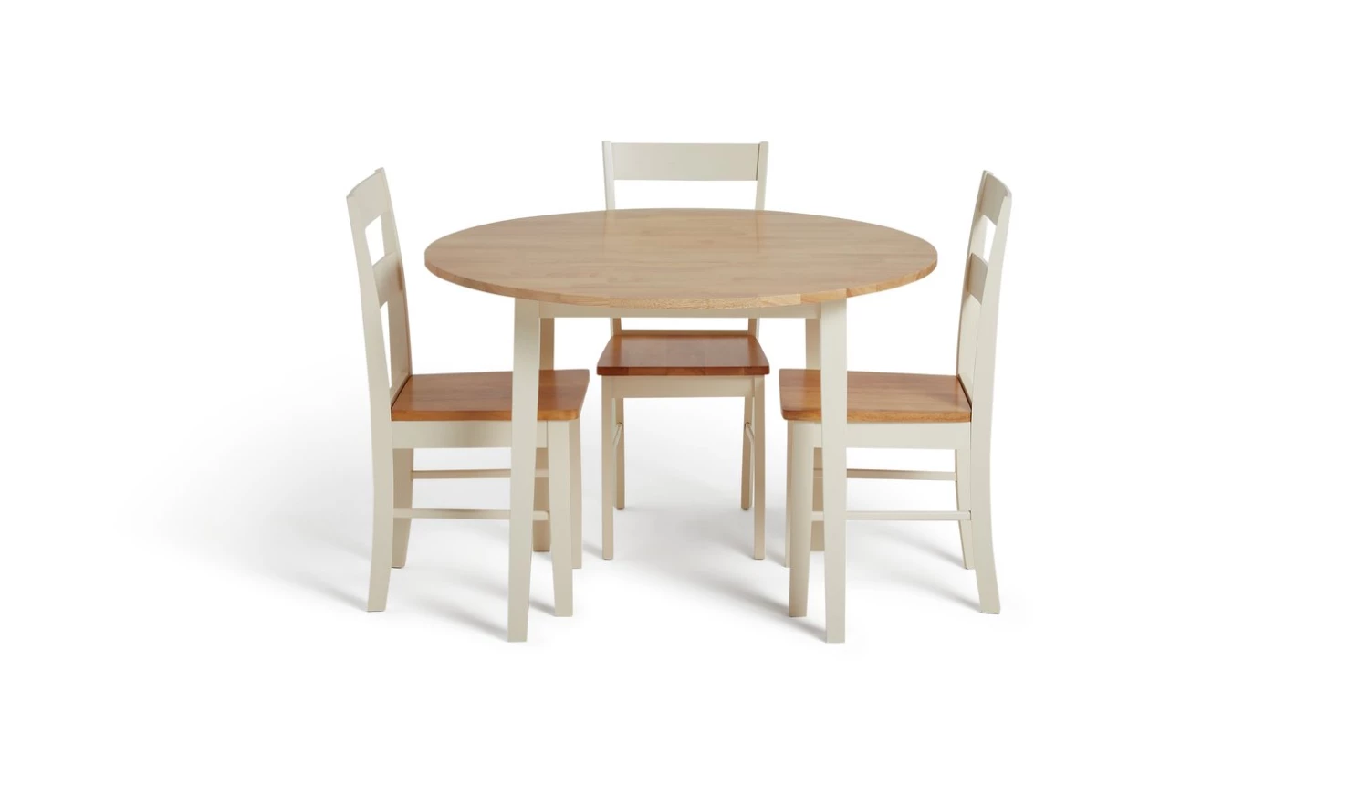 If your taste is traditional, you'll love the Habitat Chicago's classic look. It's perfectly sized for smaller dining areas. In a bright, airy off-white and wood design, it's two-tone finish offers a touch of country cottage charm. This hardwearing solid wood round dining set comes complete with 4 chairs that perfectly complement the Chicago's homely style.