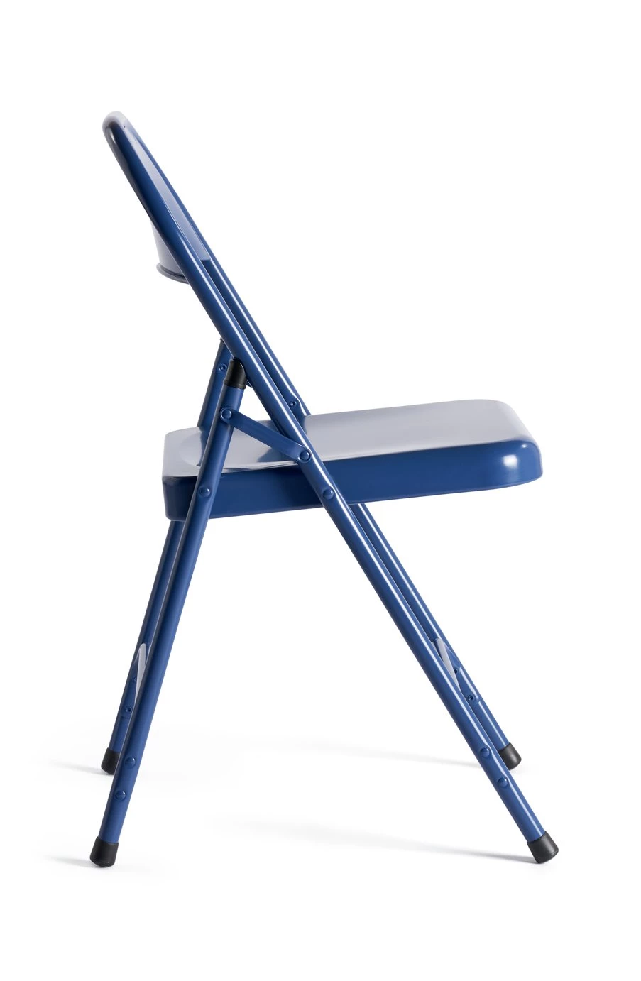 Vibrantly versatile. Our Macadam folding chair is a sleek space-saving seat. A modern twist on a classic 1970's design, it's made from blue, powder coated steel with rubber feet. No slipping or scuffing the carpet. Extra guests for dinner? Have a few handy to fit everyone around the table. Just fold away when not needed. Work from home? Tuck one under a desk and focus on style. So lightweight, you could even pack it up for a picnic. Cool.