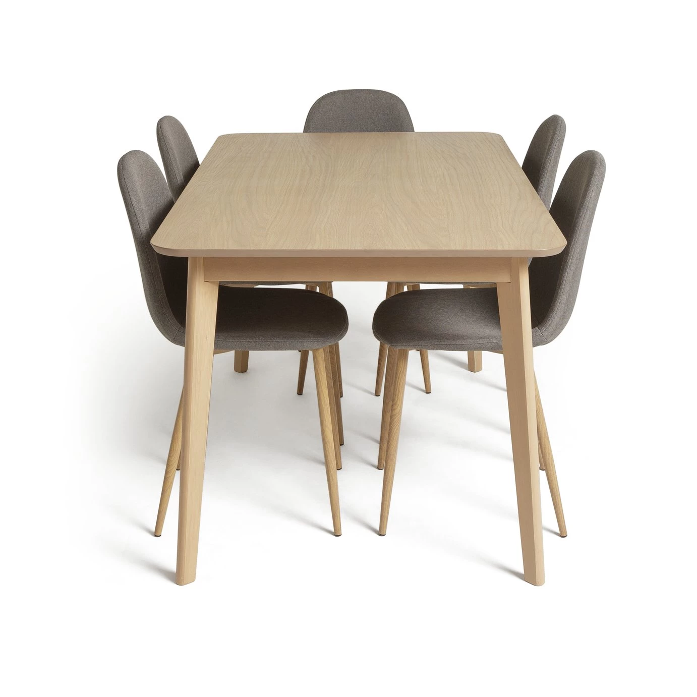 The Habitat Skandi 150cm oak dining table will stand up to the rough and tumble of family life. Naturally beautiful with a light oak finish, it's rounded edges and elegantly tapered legs exude warmth and calm. A light, airy and welcoming addition to your kitchen or dining space, it comes with 6 complementary Beni grey fabric and oak dining chairs. For family dining with streamlined Nordic sophistication, this stylish dining set ticks all the boxes.