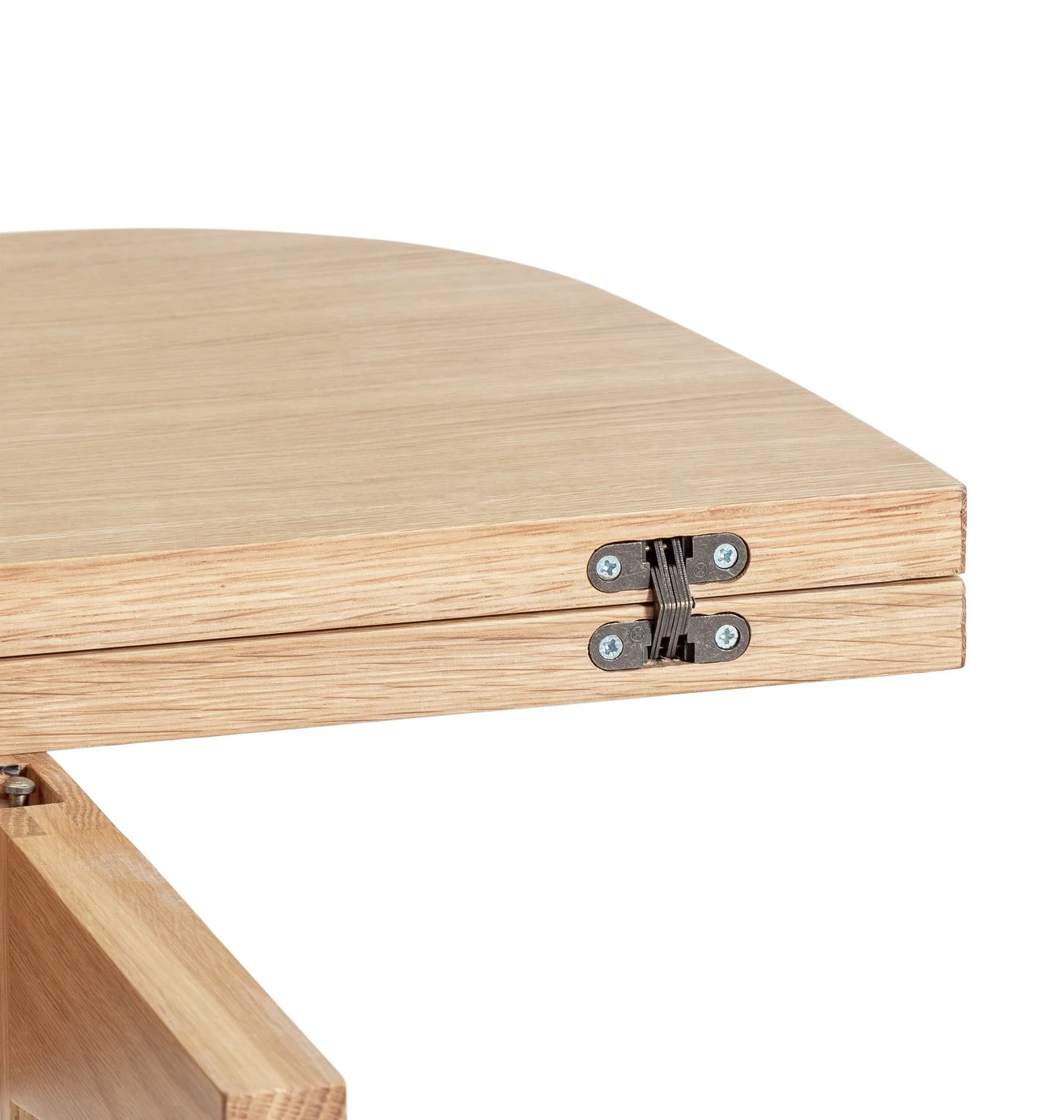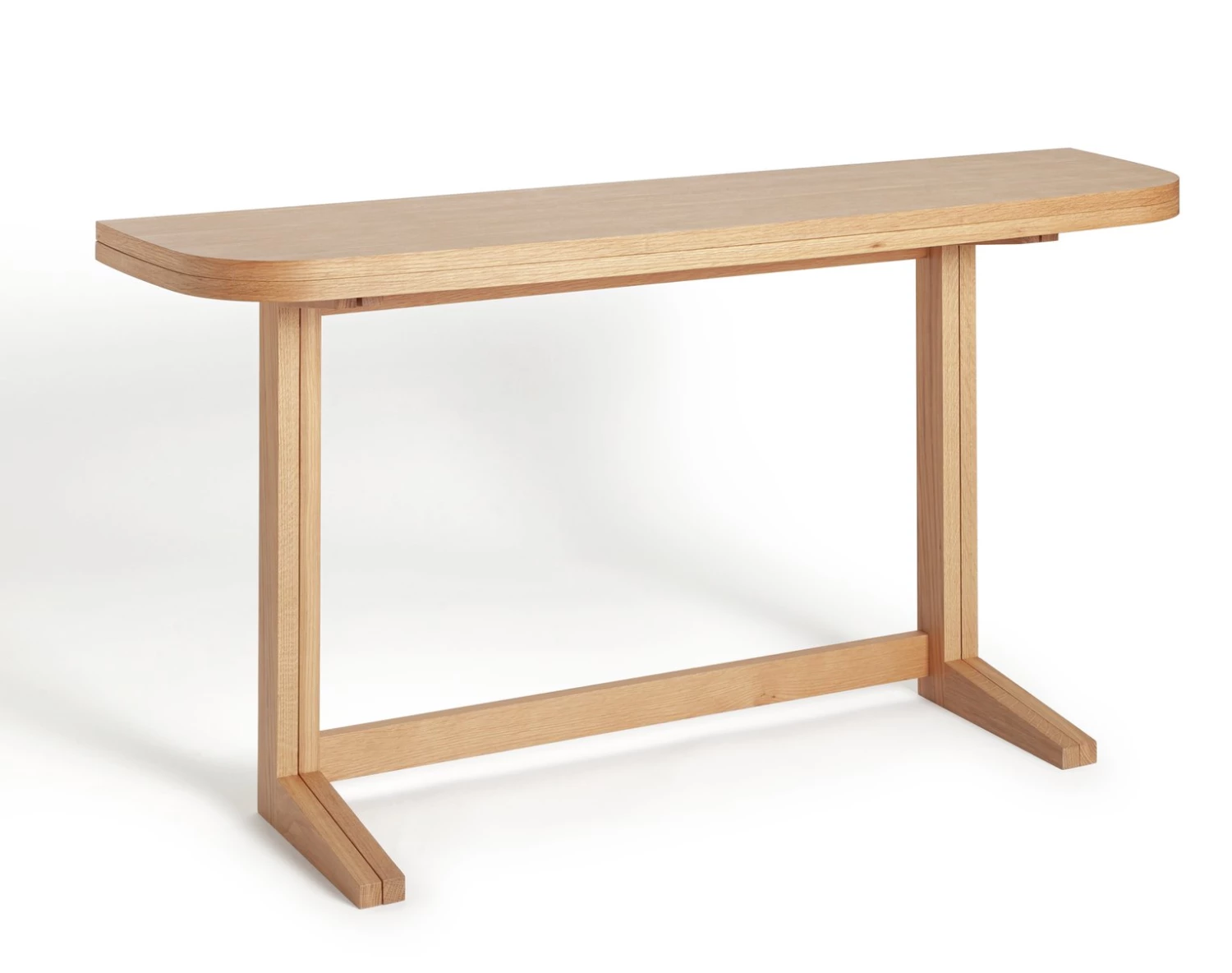 Space out. Our Etta Folding table isn't just a pretty face. Sure, it's oak veneer with curved edges and modern design, but it's also a clever space saver. Built with a drop leaf, Etta can be opened up to make a stylish dining room table or halved and put against the wall to create a console, desk or buffet table to entertaining.