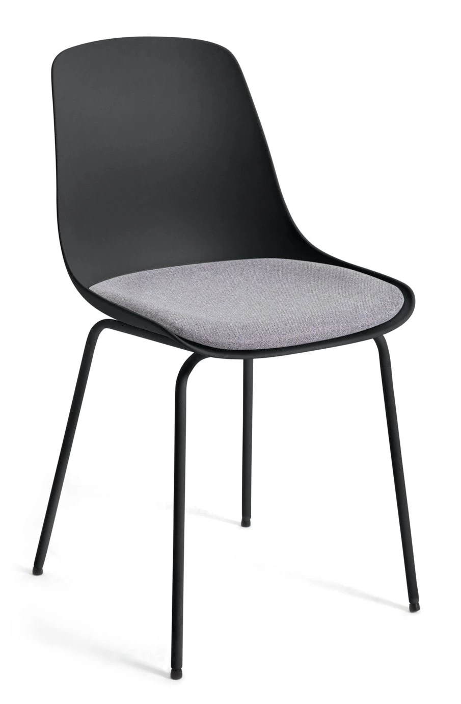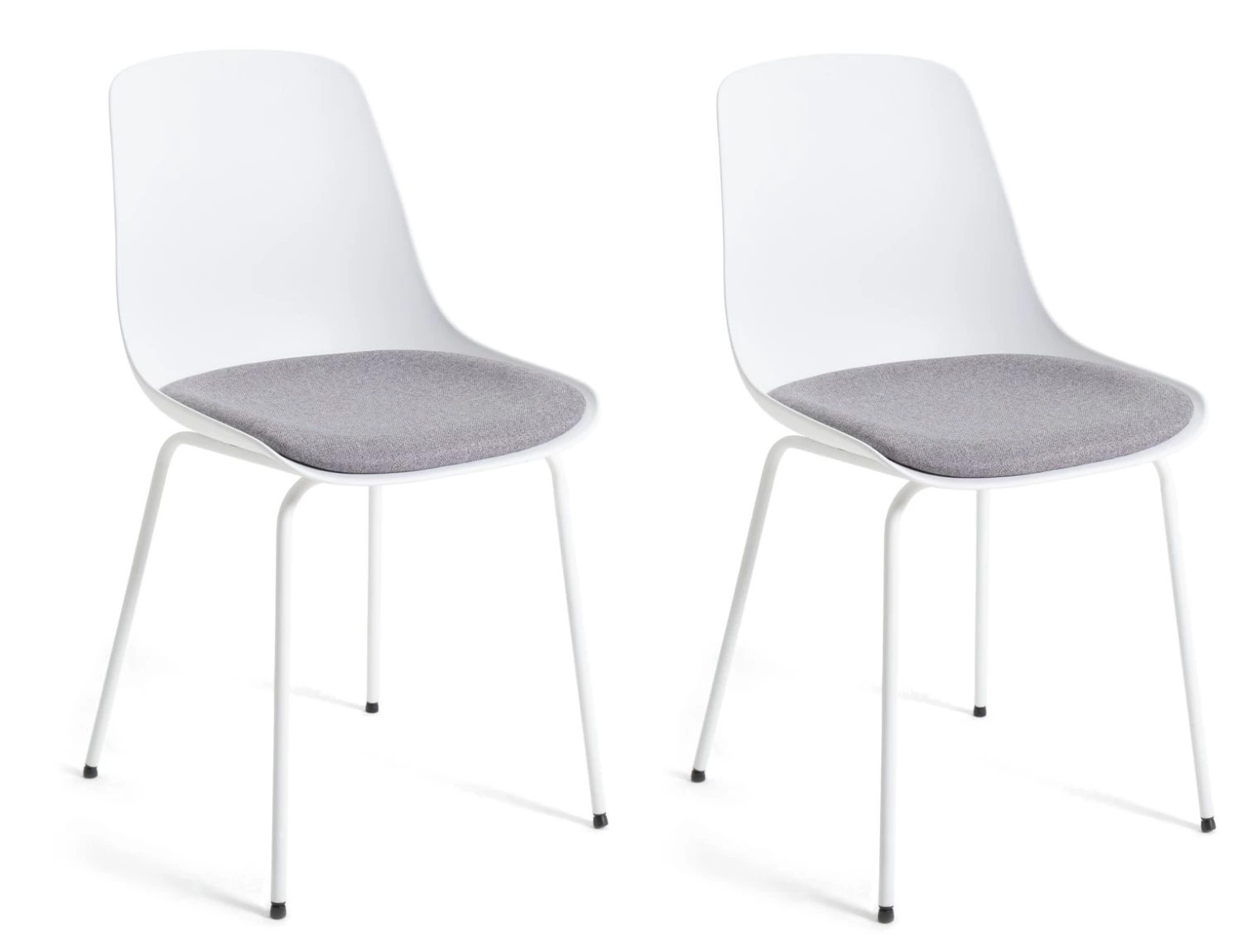 If you are a fan of sleek design, modern curves and comfort, then you'll love this pair of dining chairs. The light grey upholstered seating pad is cradled by a black polypropylene frame. And powder-coated metal legs complete the fluid silhouette. The organic shape brings contemporary character to your space.