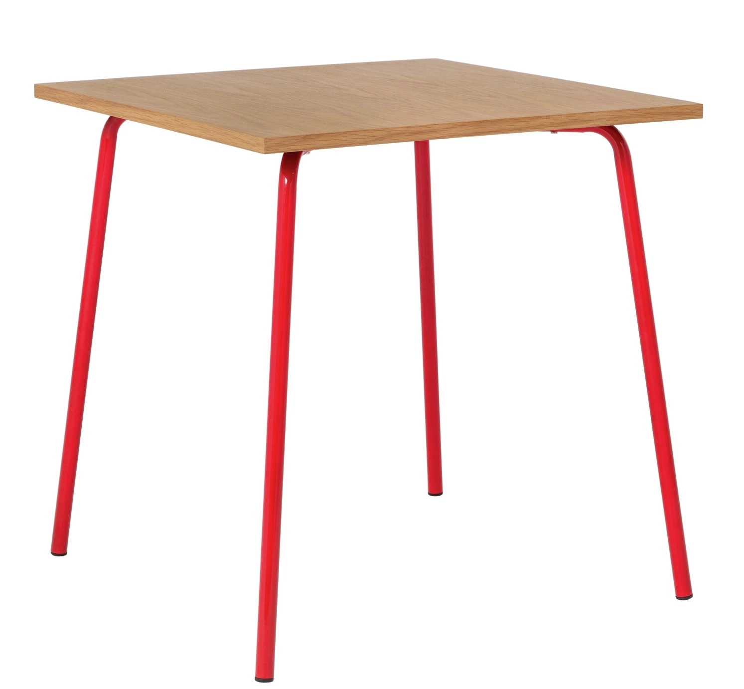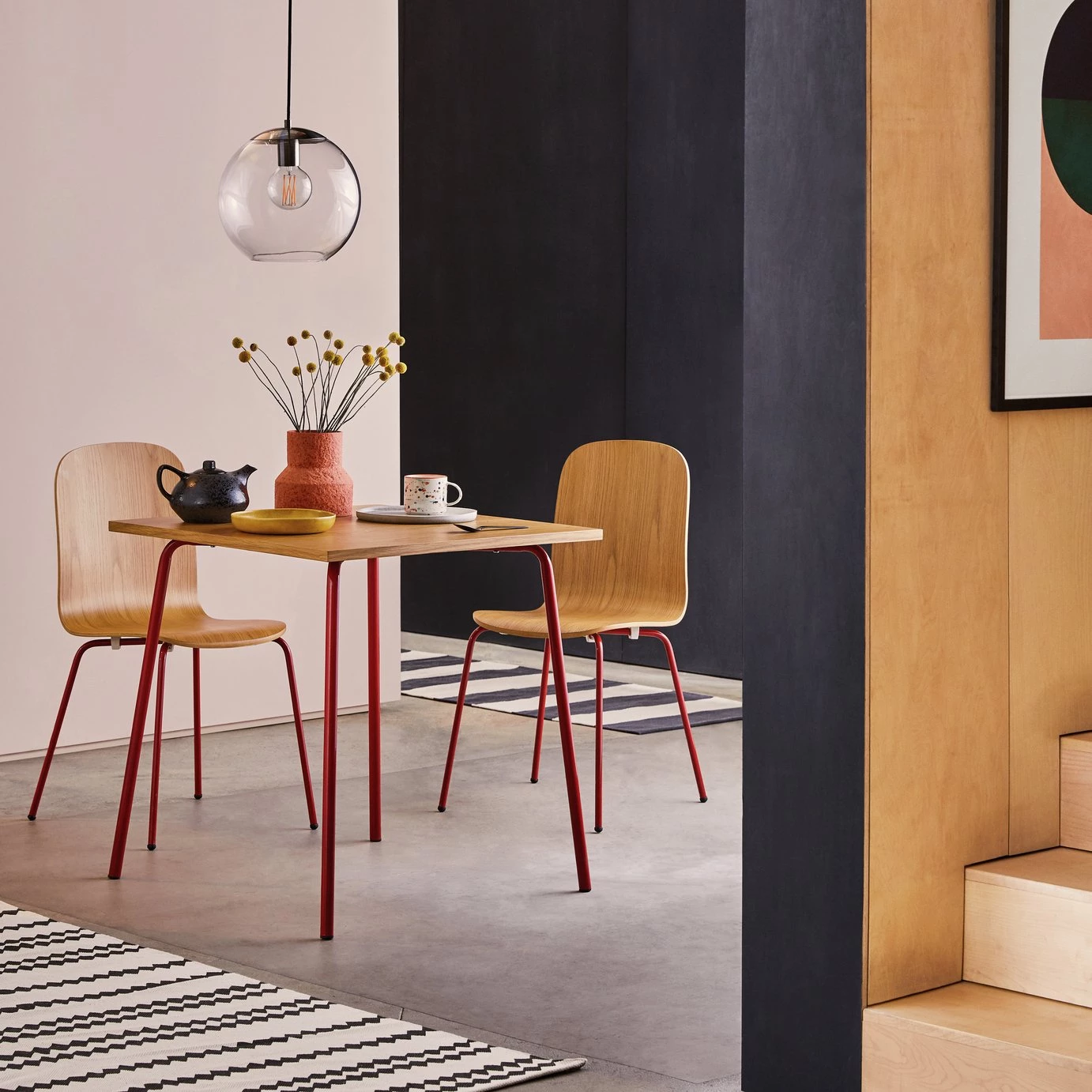 The Kirby oak veneer and red gloss 4-seater dining table was created in the Habitat design studio with a subtle nod to the 80s. This oak veneer table is finished with contrasting red gloss powder coated legs to add a contemporary twist to an otherwise classic design, as well as bringing a touch of Habitat personality into your home. Great for smaller spaces, it has a sturdy top thats finished with a clear lacquer for durability. Part of the Kirby range, matching dining chairs are available alongside coffee tables, TV stands and desks.