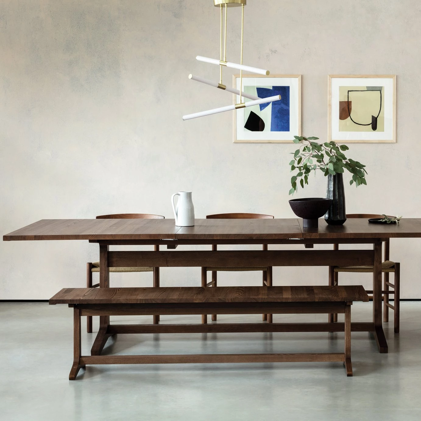 Classically Habitat, the Parker walnut stain extending dining table is reminiscent of refectory-style dining furniture. Designed in house and exclusive to Habitat, the table is made from solid ash with a warm walnut stain and has subtle, contemporary design features that reflect the authentic craftsmanship of each piece. Great for large family suppers or parties with friends, the table can accommodate up to 12 people, using an extension leaf stored inside the table. The table is also in available in oak and both have matching Parker benches.