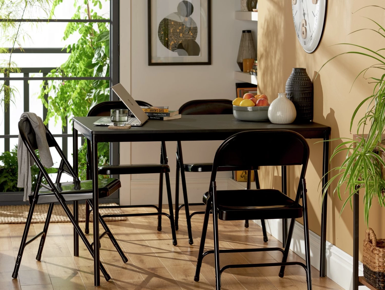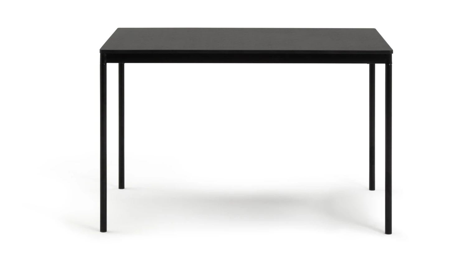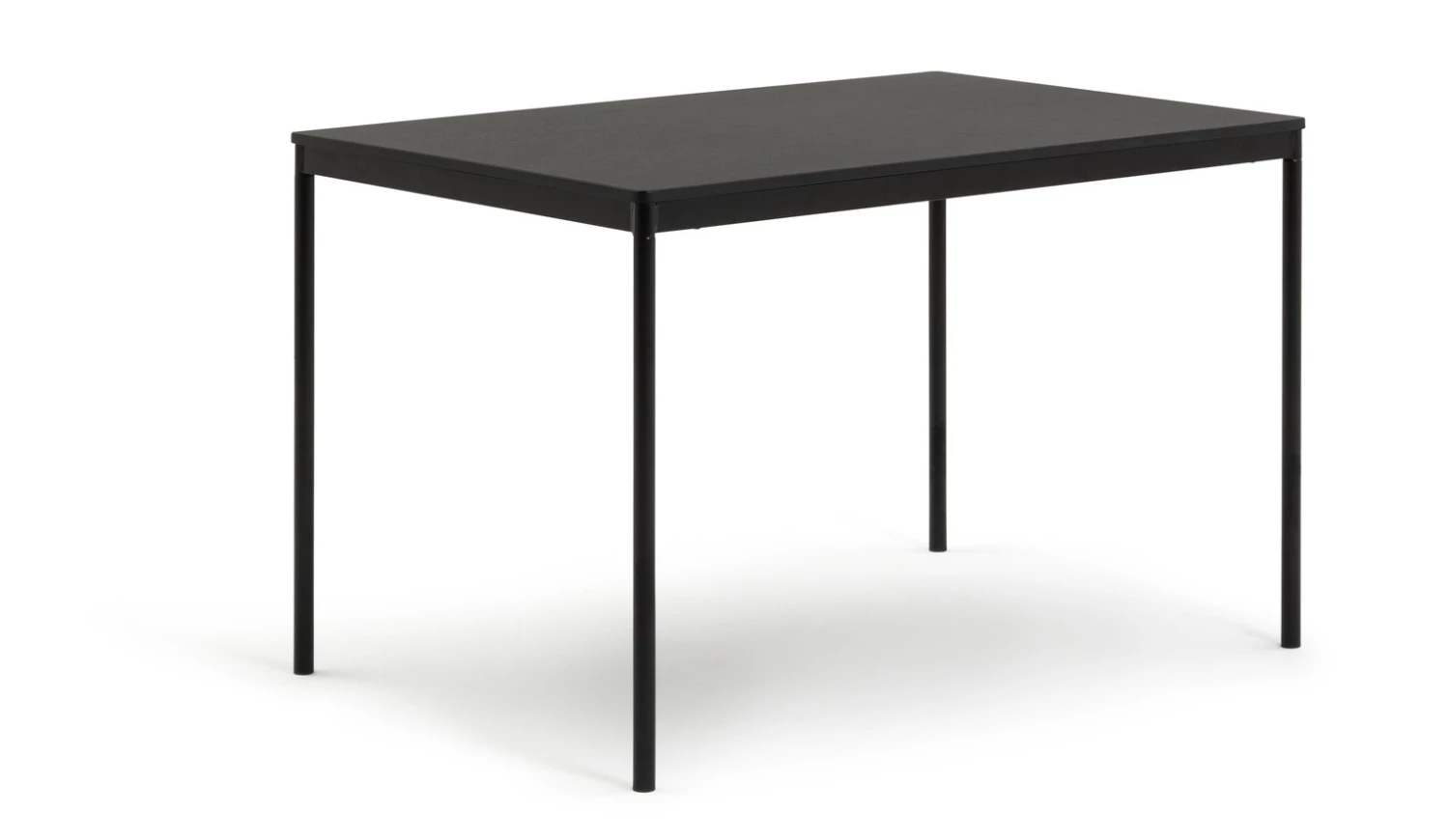 Simply sleek, that's Stella. Our black, 6-seater dining table is a cool, contemporary choice for family meals or a night in with friends. Bring an industrial touch to your living space with its deliciously smooth and striking metal design. The wood effect tabletop is easy to wipe clean too. Working from home? This versatile table doubles up as a desk. Day or night, settle in with Stella.
