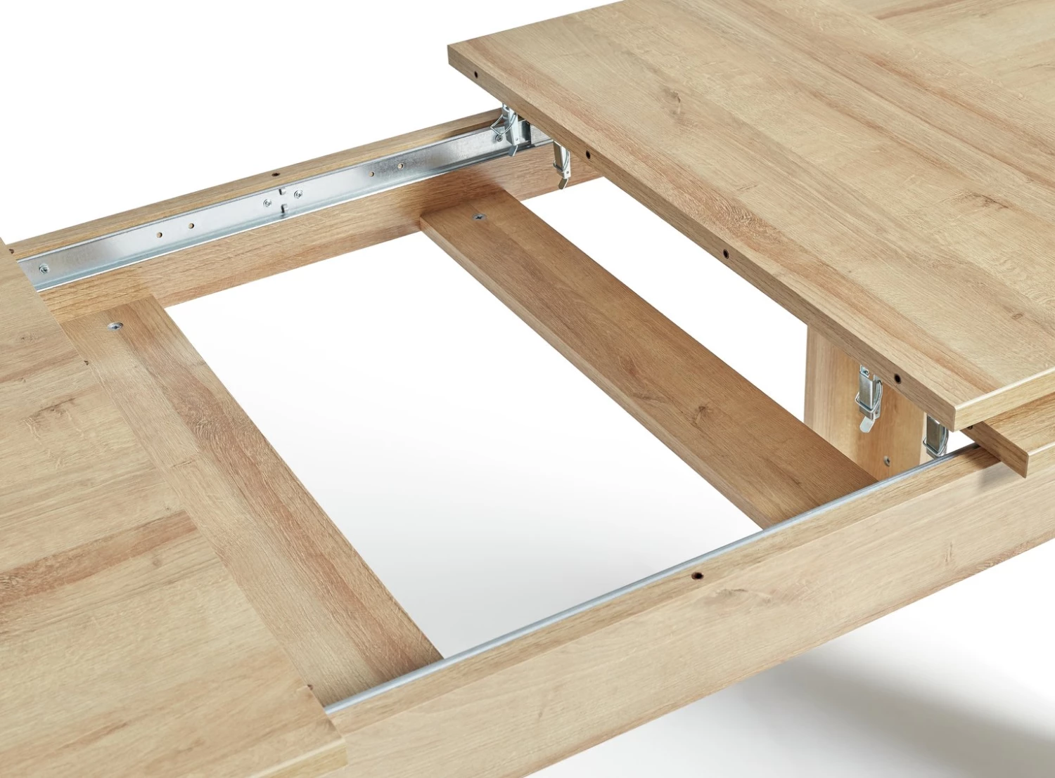 Bring the family together. The Habitat Miami dining table's got an oak effect finish, for a warm, relaxed style. And the easy-clean, scratch-resistant table top is brilliantly kid-proof. And the extendable table takes it from a 6 to an 8-seater; perfect for when you have a few more mouths to feed.