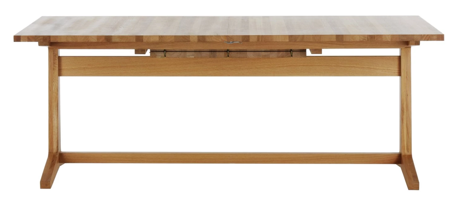 Classically Habitat, Parker oak extending dining table is reminiscent of refectory style dining furniture. Designed in house and exclusive to Habitat, the table's solid oak construction and modern subtle design features reflect the authentic craftsmanship of each piece. Great for large family suppers or parties with friends, it can accommodate up to 12 people, using an extension leaf stored inside the table. The table is also in available in walnut stained ash and both have matching Parker benches.