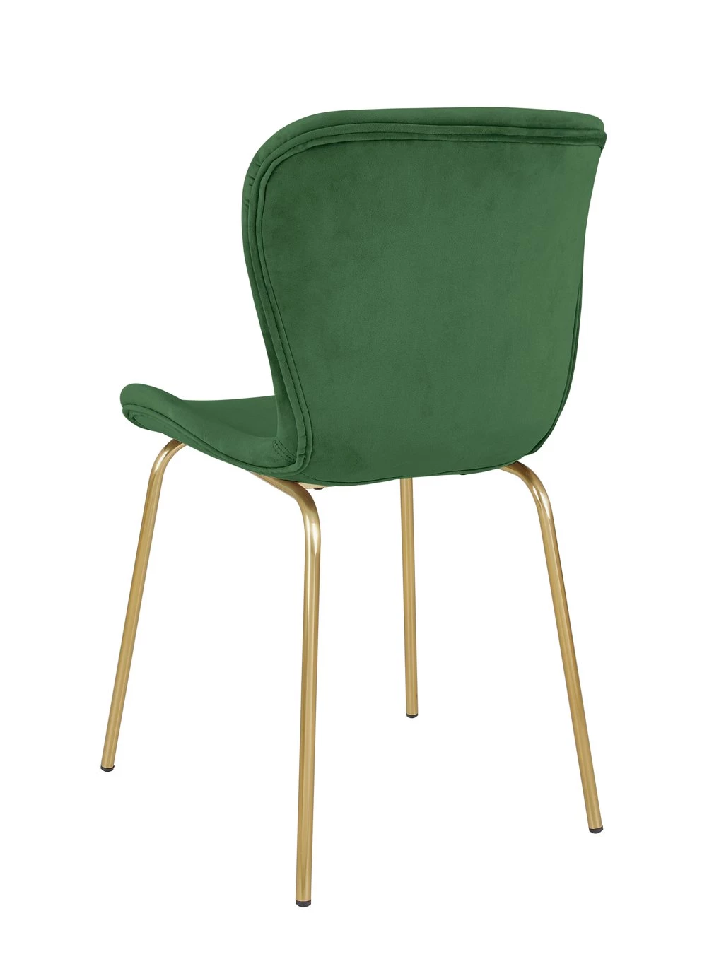 The Etta green velvet upholstered dining chair with metal legs has a slightly scooped seat with a curved back and rounded edges for comfort. The dining chair complements the Etta black-stained oak extending dining table and other designs in our collection. The Etta range includes a sideboard and bench, and the chairs are available in a wide choice of colours, materials and finishes.