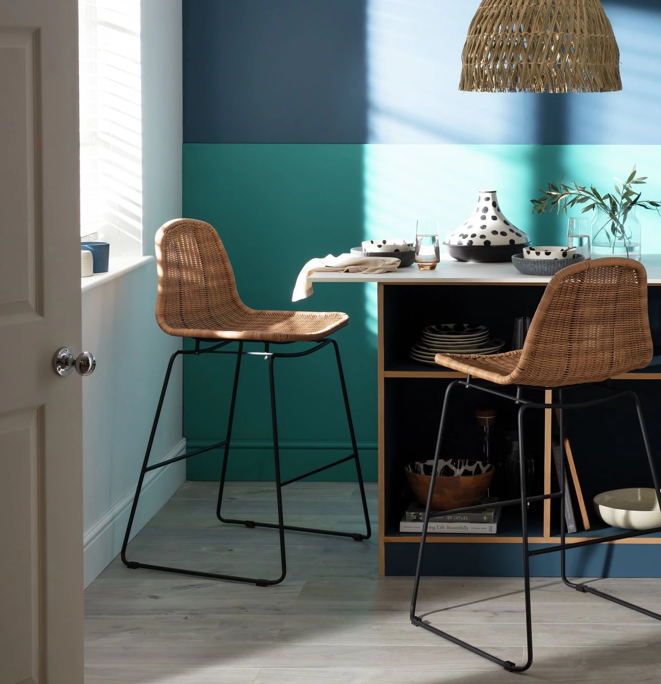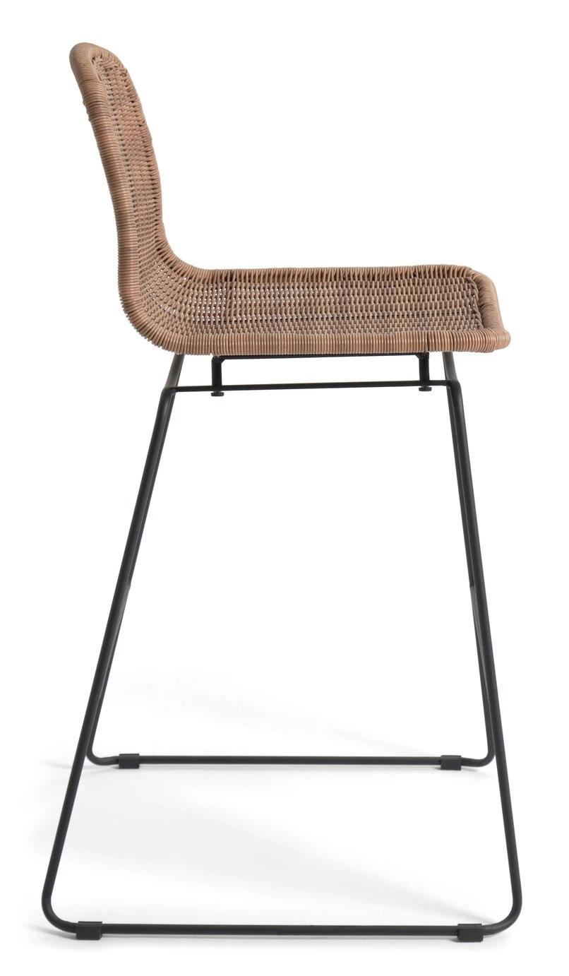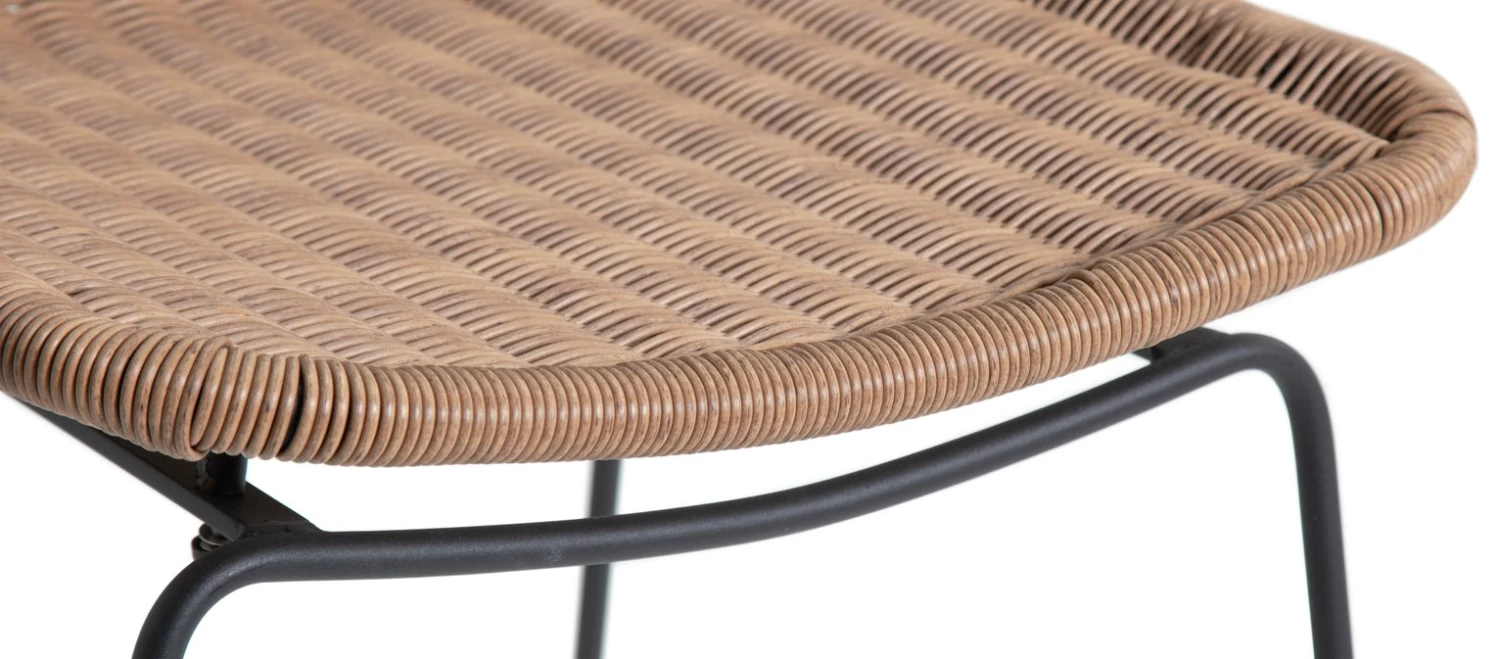 Our pair of Mickey barstools scream global chic. The hand-woven rattan effect seats are comfortably inviting. Teamed with strong and slender black steel ski legs this naturally charming duo have an uncluttered modern look. A great way to dress up your breakfast table or cocktail bar.