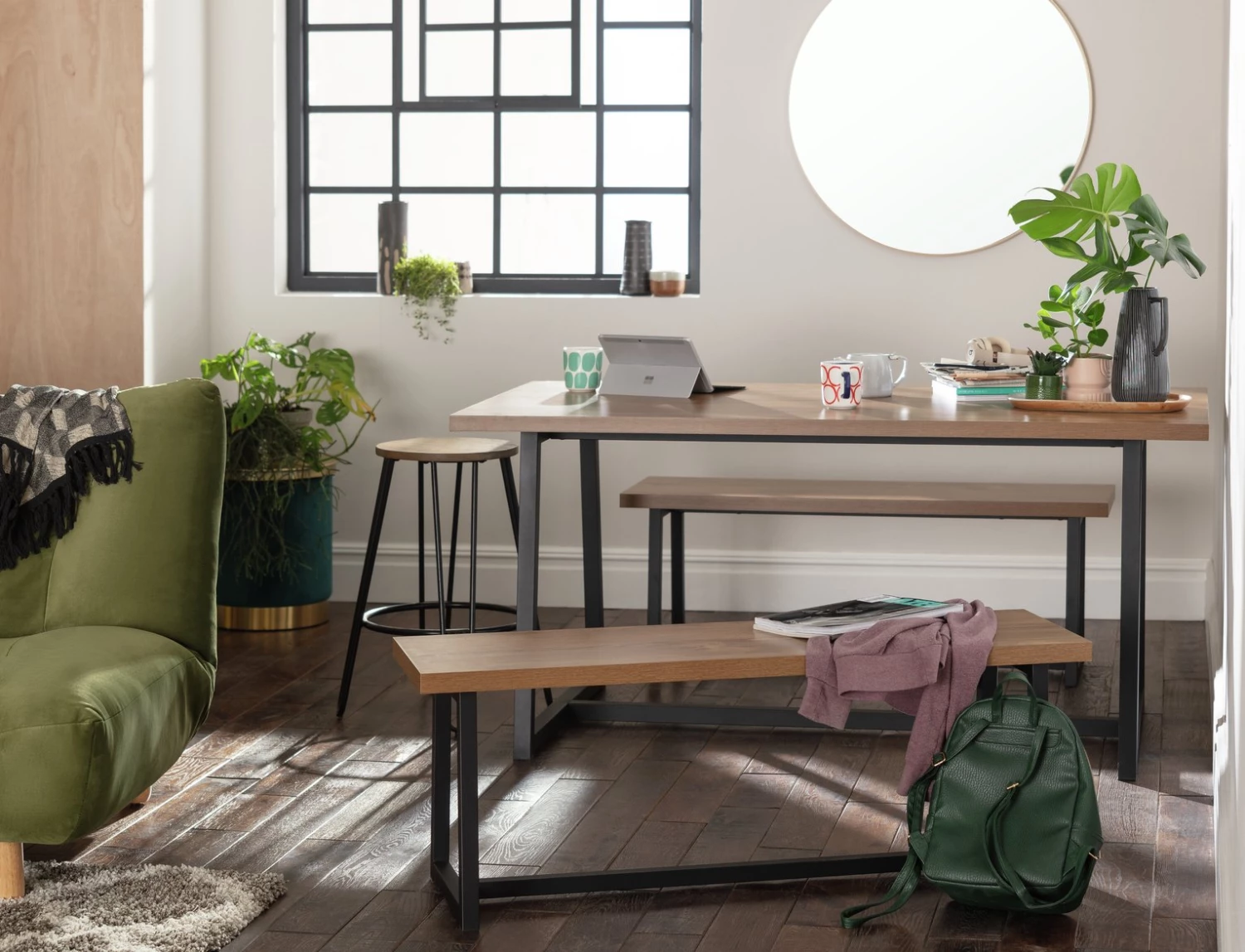 We've chosen 2 benches to go with this table for casual, laid-back dining. The whole family can squeeze round, catch up and chow down! They're easy to tuck underneath when they're not in use, making them great for saving space.