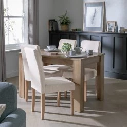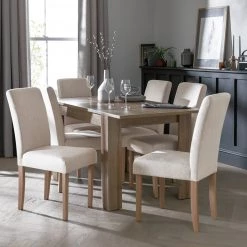 Free Shipping – Habitat Miami Wood Effect Dining Table & 6 Cream Chairs Dining Room Sets