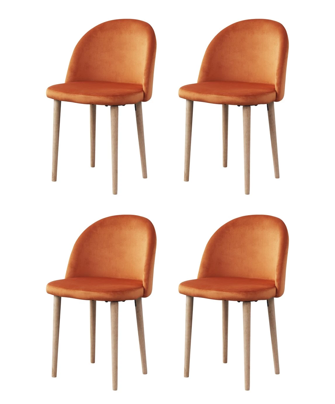 Seats to sink into. These opulent Imogen chairs are super stylish and will make a real statement in a contemporary setting. Upholstered in a bright on-trend orange fabric, the padded back and deep stitch detailing adds a sleek, high-end finish. The contrasting tapered wooden legs complete the modern look. Now you can dine in style.