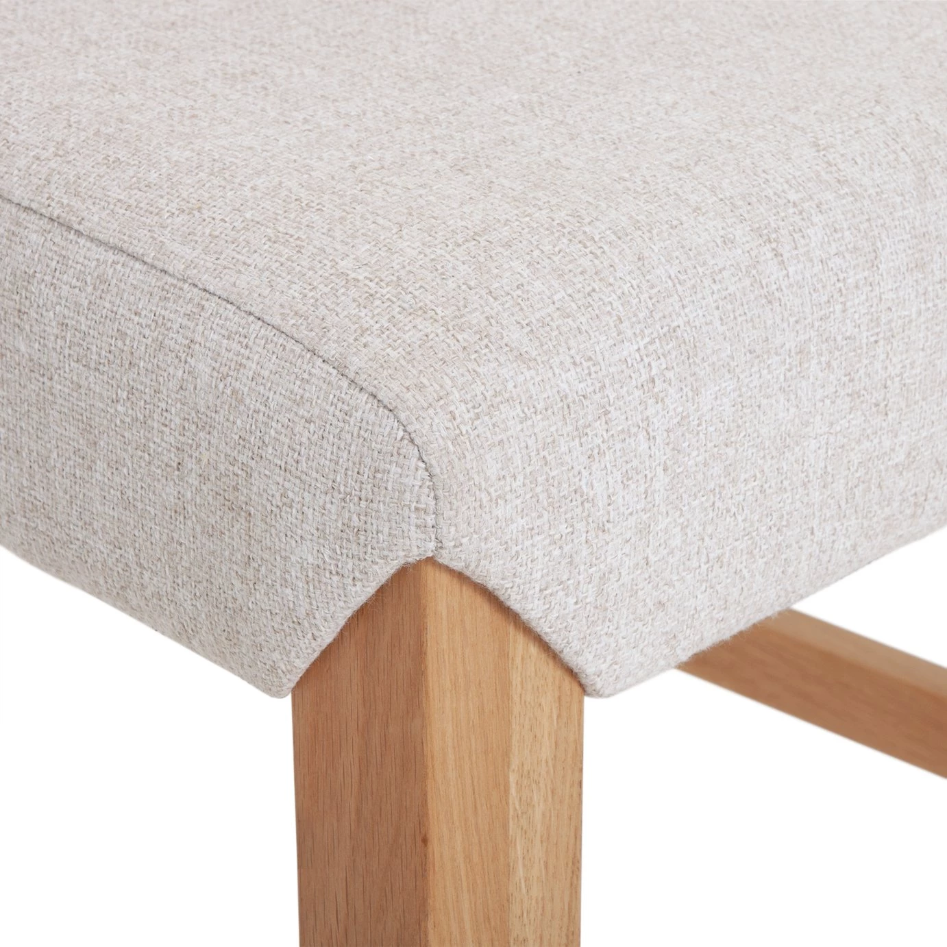 Classic good looks? Rosmond has those in abundance. Airy slatted wooden backs and solid oak frames give this foursome a distinctly farmhouse feel. And the warm tone of the wood complements the comfy cream upholstered seat pads perfectly. A homely perch for hearty meals. Sit down and stay a while.