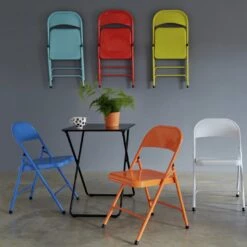 Flash Sale – Habitat Macadam Metal Folding Chair Yellow Dining Chairs And Benches