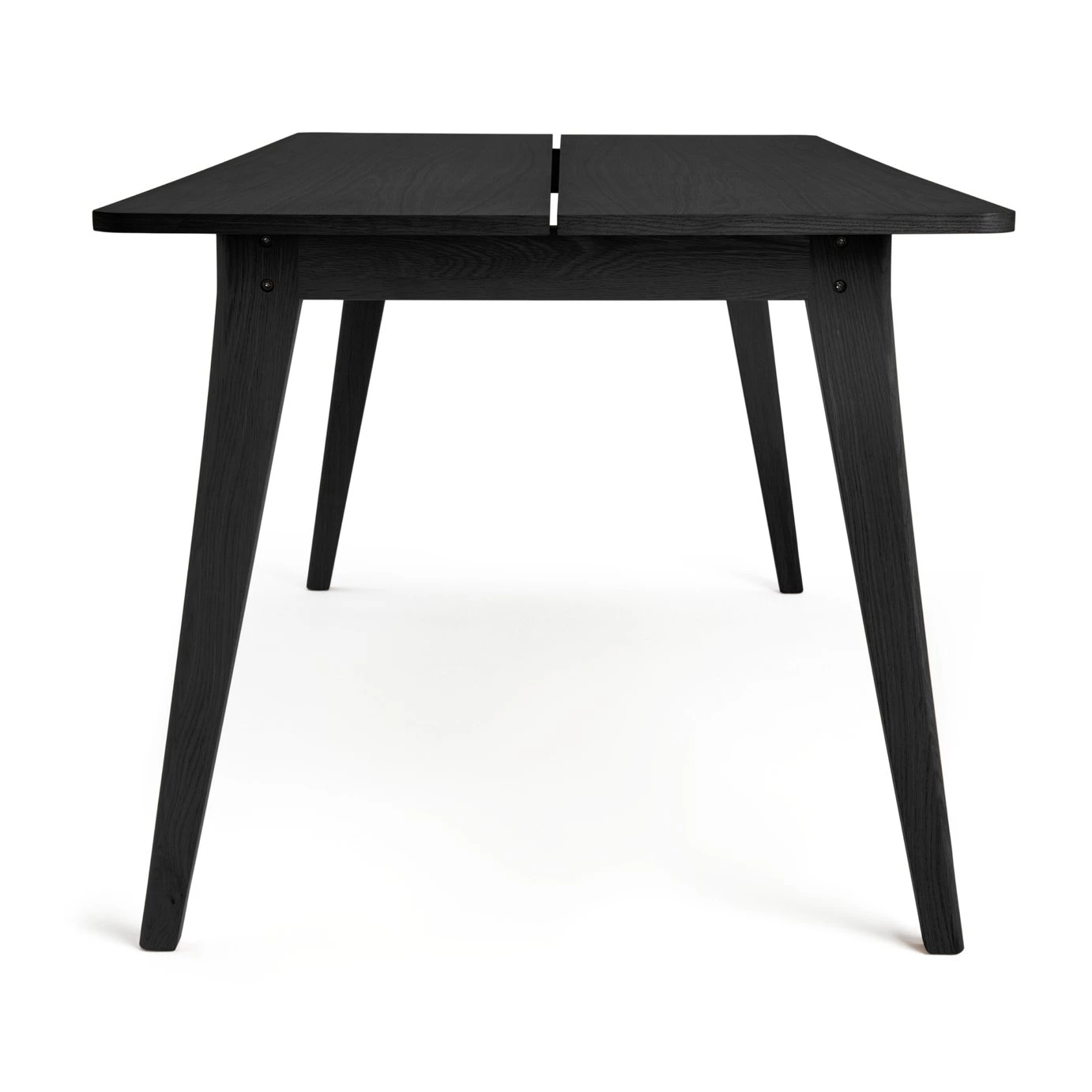 Elegant dining. Settle down for breakfast, lunch and dinner at our black 6 seater dining table. The clean and simple design with gently tapered legs brings a smart feel to your kitchen or dining room. With a wood veneered top, it is modern but with a comfortably traditional feel. Gather family and friends for meal after meal, this is a piece that will be around for many years.