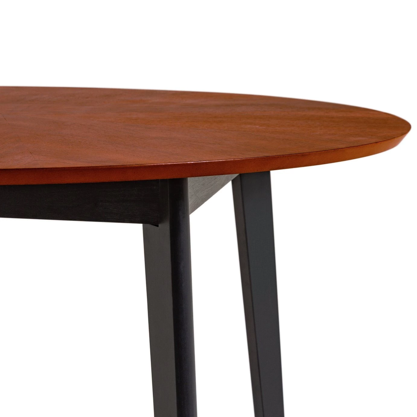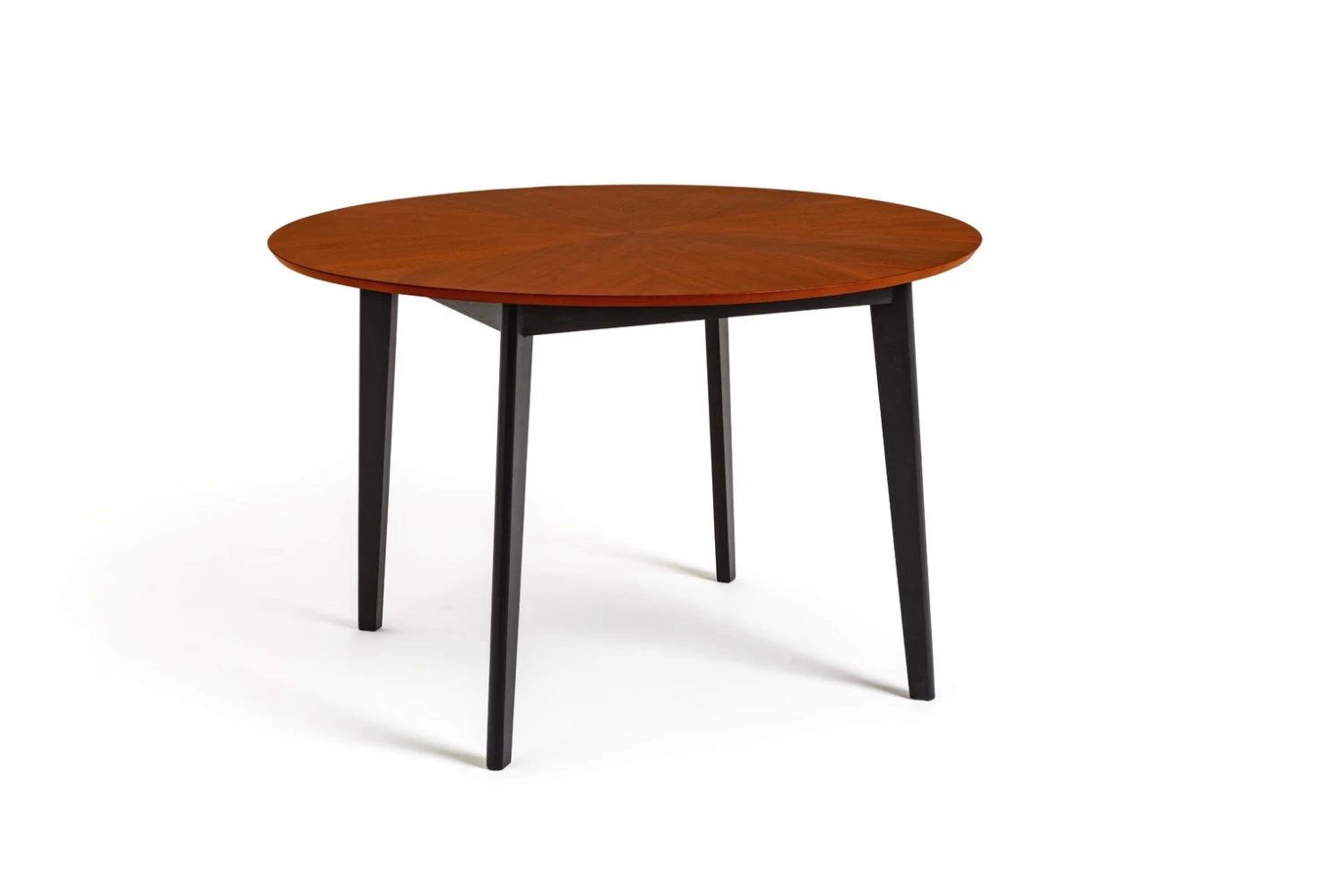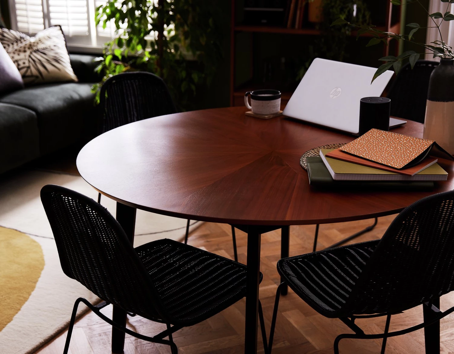 The perfect place to dine. Let Sunny's rich opulence take your home decor up a notch. Crafted with an elegant walnut effect top, it's made for those with an eye for the finer things. A circular table that comfortably seats up to 4 diners, the scene-stealing tabletop is complemented by dark solid wood legs. It's classic meets contemporary with a healthy dash of luxe thrown in. Measuring 75cm x 120cm, Sunny is ideal for your kitchen or dining room. Gather round and tuck in.